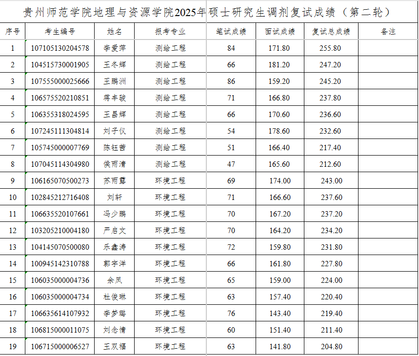 2025年硕士研究生调剂复试成绩(第二轮)