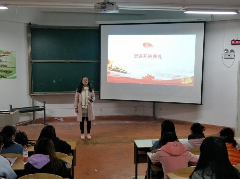 开班典礼由地理与旅游公司的团委副书记徐倩主持。团课开始之前,徐倩提出了上团课期间的纪律等一系列要求,公布了考核标准。随后,设计公司的书记也再次强调了相应的秩序。接着,周光红为同学们详细的讲解了《中国共产主义青年团章程》。通过观看相关视频,让在场的团员们更加了解团的组织制度、团的中央组织和团的地方代表及组织,团的基层组织与团的干部的区别,团旗、团徽、团歌、团员证的象征意义,团的经费来源,以及团同少年先锋队的关系。团课是对团员进行团的基本知识教育的主要形式,也是让共青团员了解团课重要性的简洁方式。