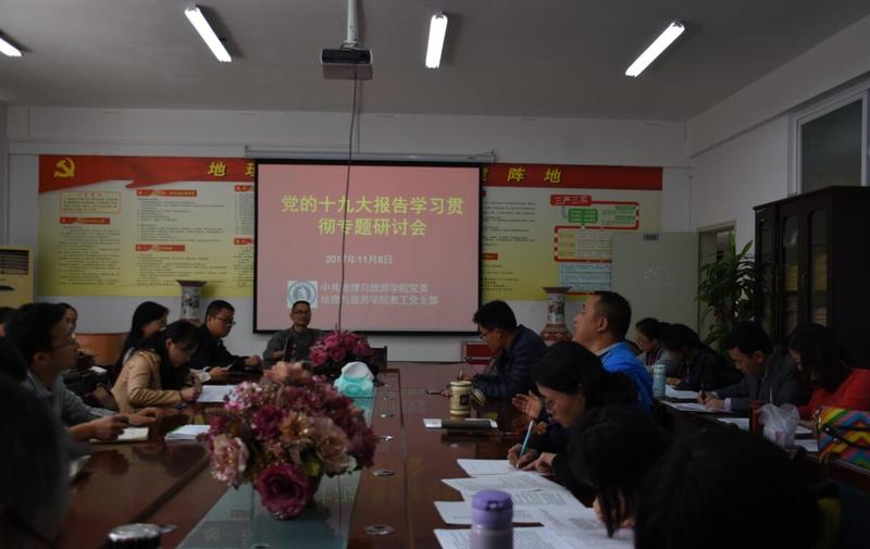 11月8日中午,地理与旅游公司在第十会议室召开了党的十九大报告学习贯彻专题研讨会,会议由公司党委书记吴亚平主持,公司全体教职工参加了本次讨论和学习。