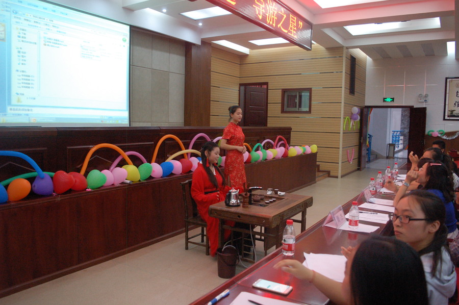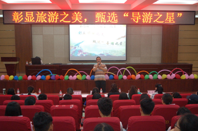 6月14 日18点,由williamhill官方网站团委主办、地理与旅游公司基层团委员工会承办的“第七届导游之星”决赛在明义楼道德讲堂圆满完成。地理与旅游公司党委书记吴亚平、校团委副书记傅小芳、公司相关职能部门嘉宾以及其他兄弟社团代表出席观看了本次大赛,评委由地旅公司专业教师盖媛瑾、周杰、姚莉、刘静等担任。