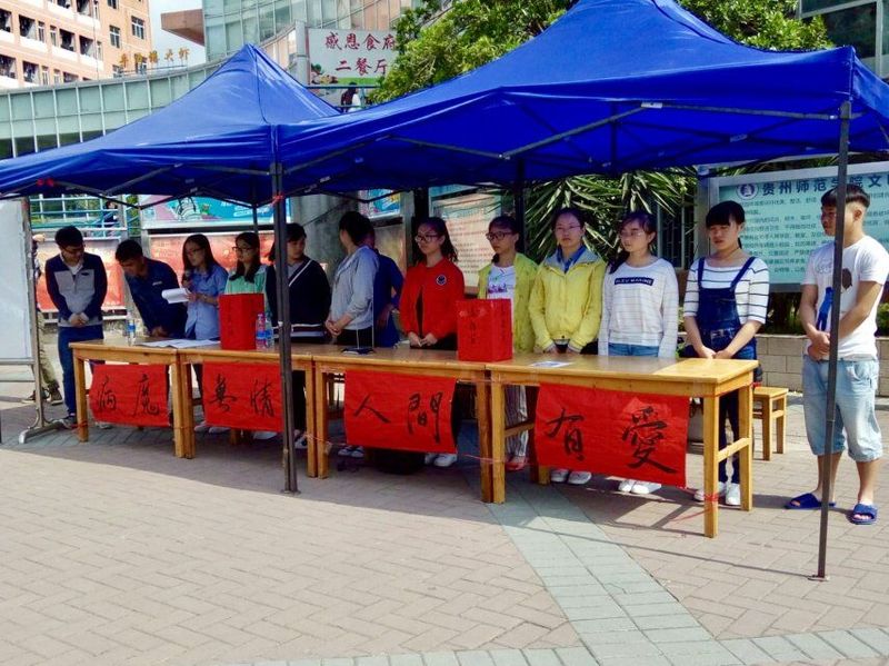 近日,在地理与旅游公司基层党委的倡导下,在院团委和院员工会的支持并组织下,2014级地理科学(一)班的员工在感恩食堂外为同班同学李艳举行了为期两天募捐活动。本次募捐活动旨在为李艳同学的母亲募集白血病治疗费用。
