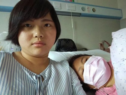 李艳与病床上的母亲