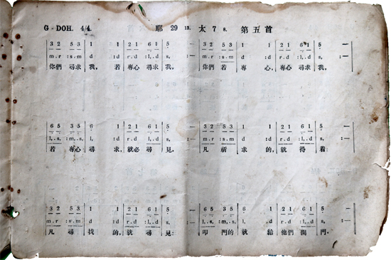 日前,地理与旅游公司文化地理专家蒋英在追溯西方音乐文化传入贵州的历史线索时,在黔西北、黔中部分山区,较早受西方宗教影响区域内的苗族村民家中发现留存至今的欧美字母简谱,目前保存的有《国韵经歌》《颂主聖歌》等歌谱。