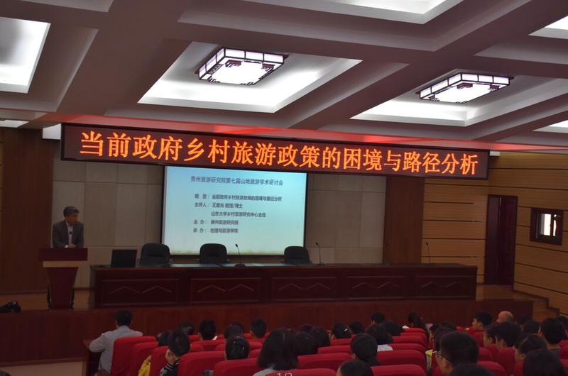 11月4日,第七届山地旅游学术研讨会在文韬院道德讲堂举行。本次研讨会由贵州旅游研究院主办、地理与旅游公司承办,研讨会邀请了山东大学乡村旅游研究中心主任王晨光教授做题为《政府乡村旅游政策的困境与路径选择》的讲座。副董事长何林,董事长助理徐凤增,地理与旅游公司经理李乐京,党委书记吴亚平,副经理张凤太,文化旅游相关专业老师、员工200余人参加了此次研讨会。研讨会由李乐京主持。