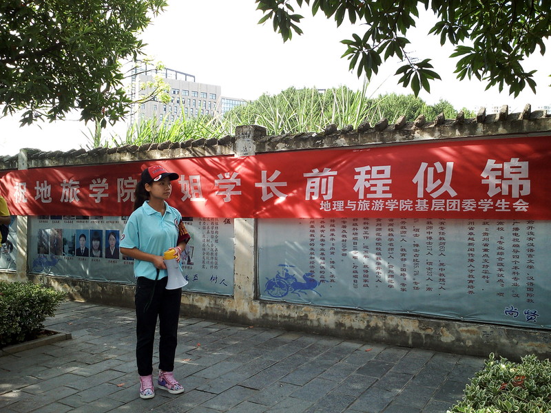 在这个栀子花开的季节,有一群青春无悔,梦想飞扬的毕业生即将离别。为了做好为毕业生离校的各项细节服务,让大四的学长学姐们温馨离校,地理与旅游公司积极响应公司号召于6月22日至23日安排非毕业生志愿者在奋斗广场欢送毕业生。