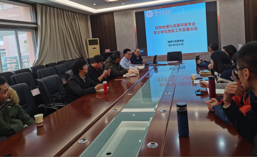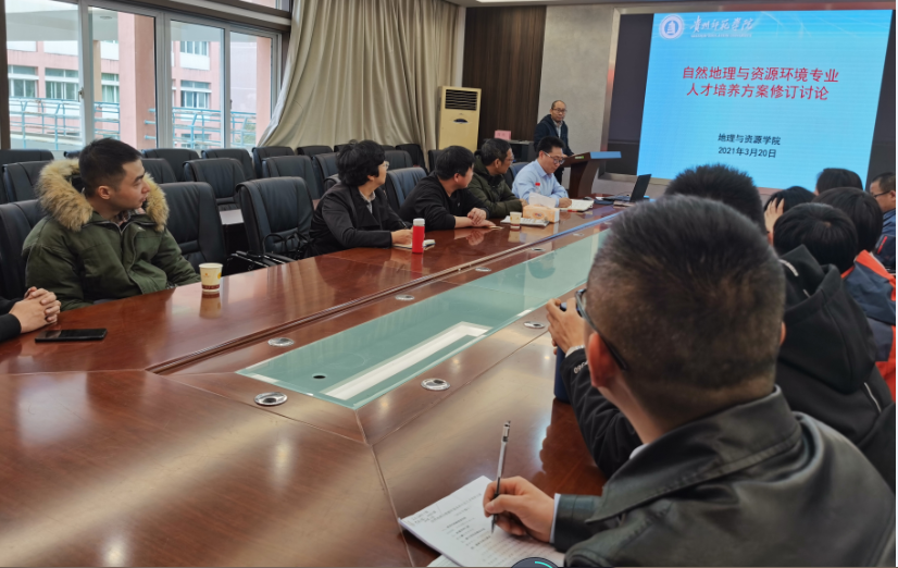 会上罗绪强对2020级地理学科大类招生的培养目标做了全面的讲解,对自然地理与资源环境人才培养方案的修订,其总体要求是把员工培养成为具有地理、资源和环境综合性学科知识的应用型人才。对自然地理与资源环境专业学士学位授权具体工作做了部署,要求对照《贵州省普通高等院校新增学士学位授予专业授权评审指标体系(试行)》,全系老师积极准备,落实分工,全院教师全面配合,确保自然地理与资源环境专业顺利通过学士学位授权评估。