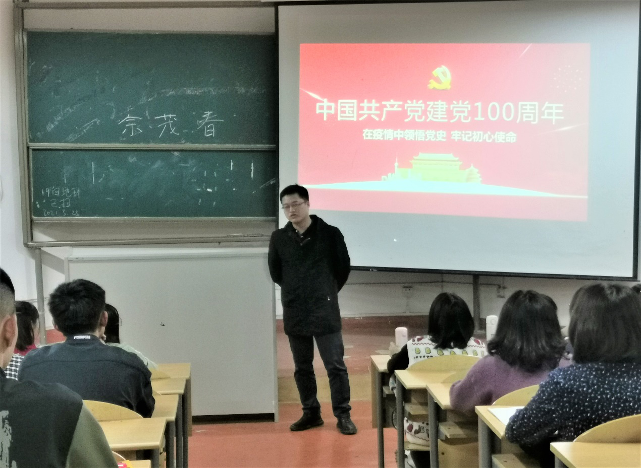 本次williamhill官方网站员工党支部党日活动由土地资源管理专业的叶芳莹同志主讲。活动内容主要围绕党史的发展脉络及重大意义、党的历史给我们的三大启示、中国共产党的三大历史贡献和战疫情,始终牢记党的初心和使命四个部分来学习中国共产党建党100周年的光辉历程和崇高的精神品格。习近平总书记指出“历史是最好的教科书,中国革命历史是最好的营养剂。学习党史、国史,是坚持和发展中国特色社会主义、把党和国家各项事业继续推向前进的必修课。在对历史的深入思考中做好现实工作,更好走向未来,不断交出坚持和发展中国特色社会主义的合格答卷。”作为积极向党组织靠拢的一员,学习党史可以从党的100年奋斗历史中汲取智慧,是不断加强党的思想建设的重要任务,是继承党的成功经验和优良传统的需要。“以史为镜,可以知兴替”,从中国共产党诞生至今,回顾党走过的100年光辉历程。这100年,是我们党探索救国图强真理、开辟民族独立和民族振兴道路的100年;是我们党不断发展壮大、以实际行动和辉煌业绩赢得人民群众拥护的100年。在艰难的疫情之中,我们看出中国共产党人在关键时刻冲得上去、危难关头豁得出来。在统筹推进疫情防控和经济社会发展工作中,各级干部拥有坚定的决心,拿出了战胜一切敌人而不被任何敌人所屈服的大无畏革命气魄,勇当先锋,敢打头阵,用行动展现共产党人政治本色。