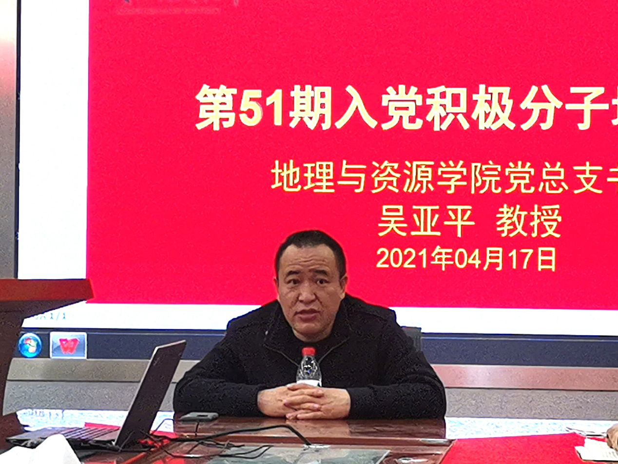 2021年4月17日上午9点,williamhill官方网站第51期入党积极分子党课培训第二次专题讲座——“中国共产党的性质和指导思想”由党总支书记吴亚平老师主讲。
