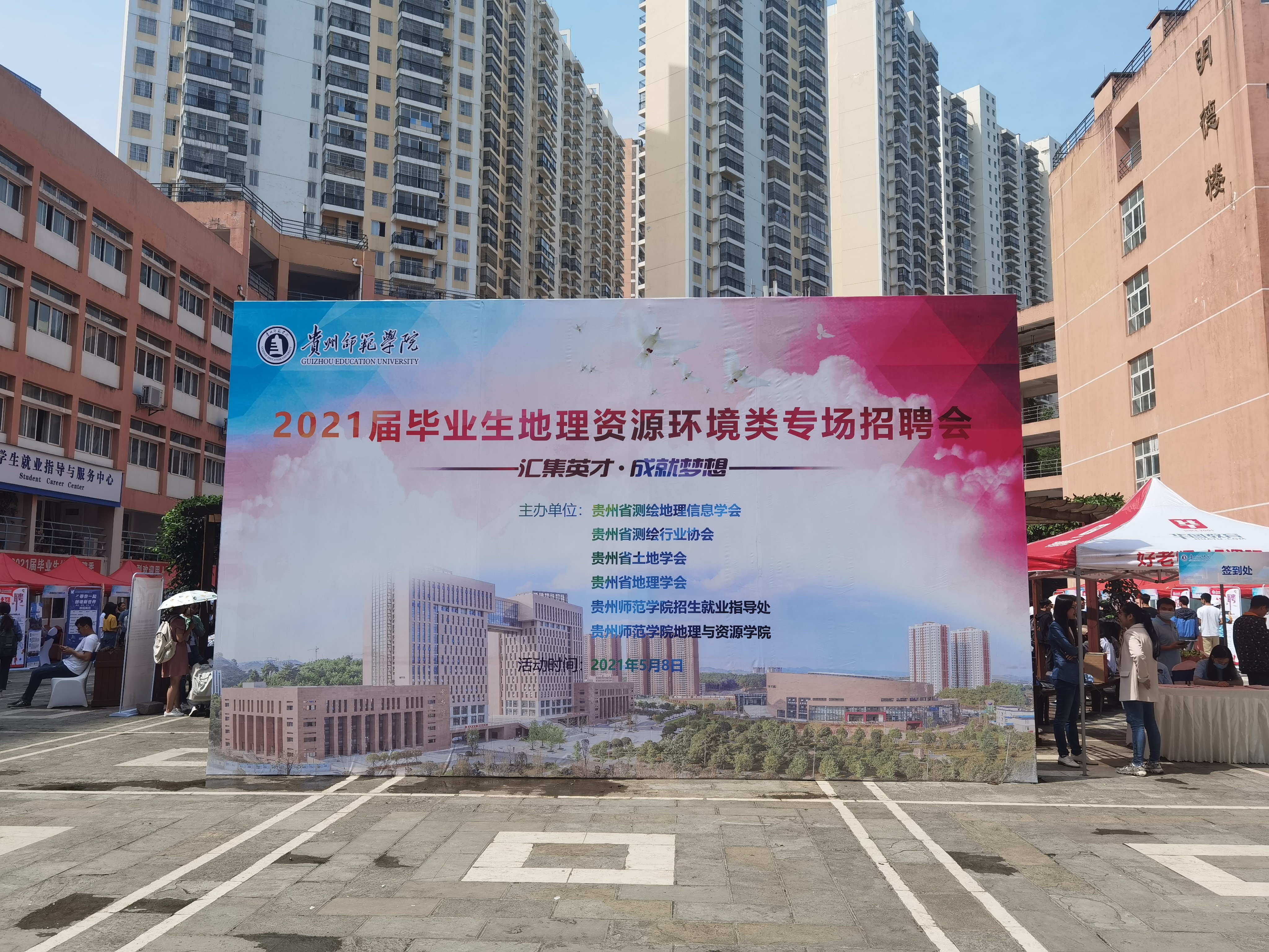 为落实党中央“稳就业”、“保就业”决策部署,促进2021届毕业生更充分、高质量就业,同时为用人单位与毕业生沟通洽谈提供广阔的双选平台,以贵州省测绘地理信息学会,贵州省测绘行业协会,贵州省土地学会、贵州省地理学会以及williamhill官方网站为主办单位,在williamhill官方网站招就处的支持指导下,于2021年5月8日在williamhill官方网站文韬苑明理楼庭院(老员工就业指导中心门前)举办了2021届毕业生地理资源环境类专场招聘会。