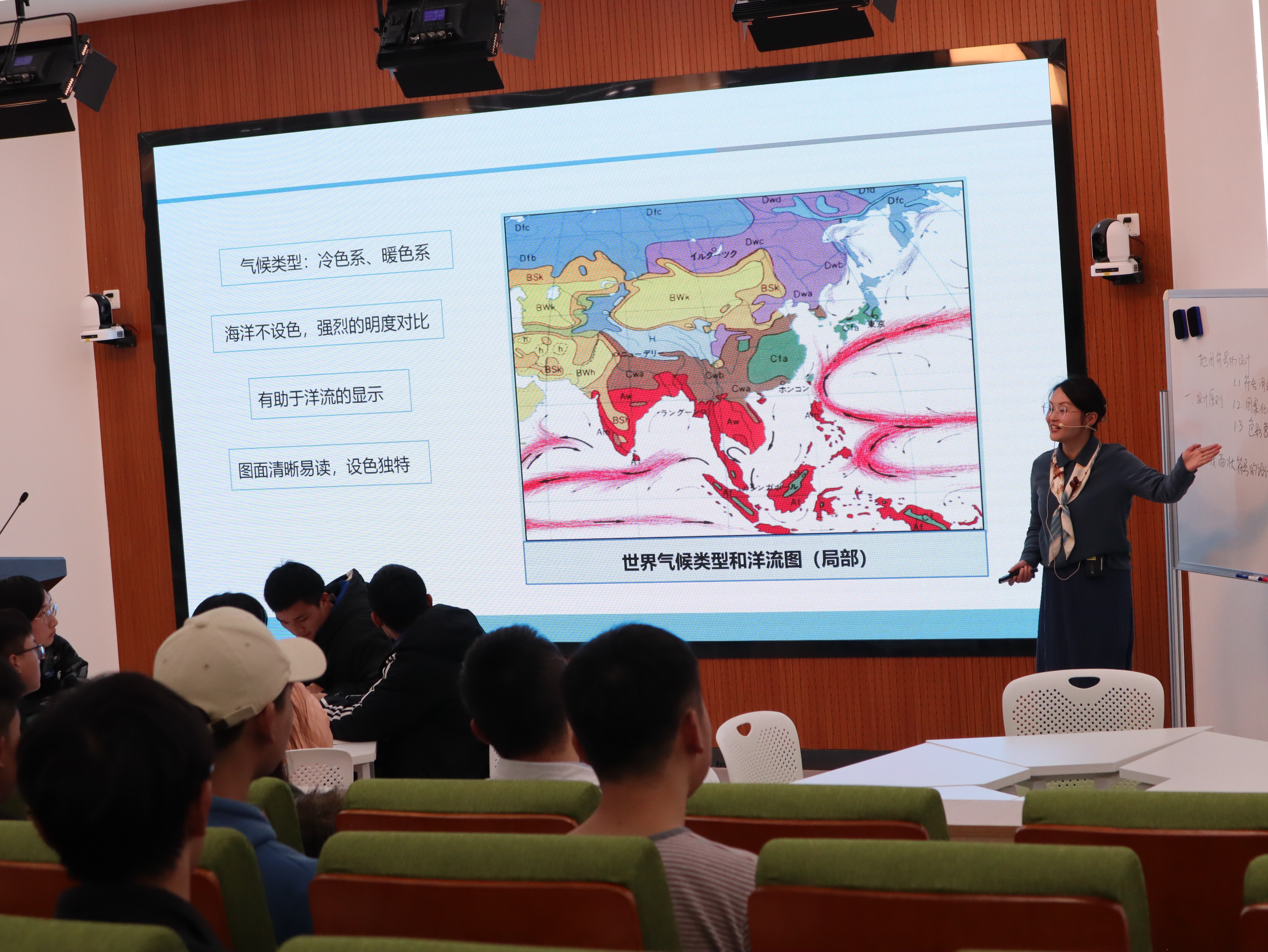 本次公开课,白老师主讲《地图学》中地图符号的设计,从空间思维——创新之源,地理素养——认知之源,智慧计算——能力之源,美学教育——活力之源四个角度出发,通过贵州连续多年被评为“全球最值得前往的旅游地”、老员工“诗词地图”、由修文地震引入全国地震分布图、金奖地图等案例,结合课堂互动、课堂实操、课后思考等环节的安排,润物细无声般将地图的设计思想和具体设计过程融入其中,并落脚到科学实践的基础和依据——国家标准上。课程以员工为主导,授课生动活泼,又有深度,既激发了员工兴趣,又让员工由浅入深收获了很多。在讲学过程中,不断加强员工的参与感,员工积极参与,积极回答白老师提出的问题,整个教学内容清晰,教学目标明确,取得了较好的教学效果。