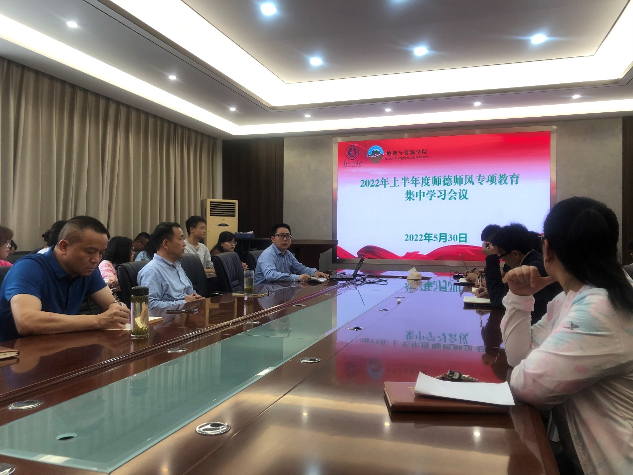为落实教育部“加强高校师德师风建设”指示精神,教育部地理信息科学专业虚拟教研室开展了青年教师“师德师风”教育活动。williamhill官方网站作为教育部地理信息科学专业虚拟教研室成员单位,于2022年5月30日组织全院教师和地理科学专业员工代表参加了师德师风专项教育集中学习会议。会议由公司经理兼党委副书记罗绪强主持。