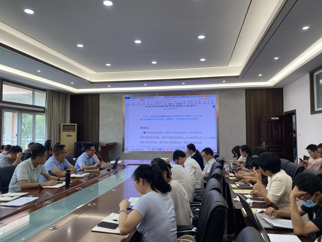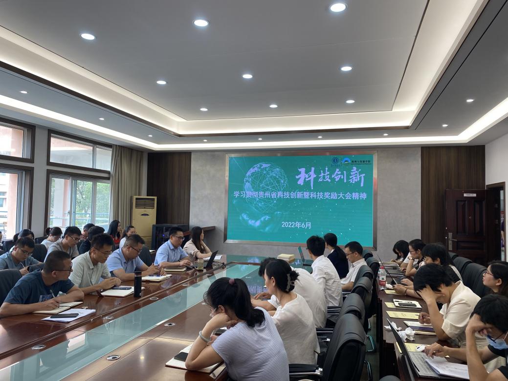 会上,罗绪强根据《省教育厅办公室关于学习贯彻贵州省科技创新暨科技奖励大会精神的通知》要求,传达学习了5月27日在贵阳召开的贵州省科技创新暨科技奖励大会精神。会议还学习了习近平总书记6月28日在湖北武汉考察时的重要指示精神以及科技部办公厅 贵州省人民政府办公厅联合印发的《“科技入黔”推动高质量发展行动方案》。罗绪强指出,在接下来的工作开展中,公司将坚持把发展科技第一生产力、培养人才第一资源、增强创新第一动力更好结合起来,围绕“四新”主攻“四化”,充分整合学科、人才队伍、平台等优势资源,突出重点,推动基础研究、应用研究及社会科学等领域研究的融通创新。全院教职工要积极响应,主动作为,在人才培养、科学研究、社会服务等方面做出新的更大的贡献。