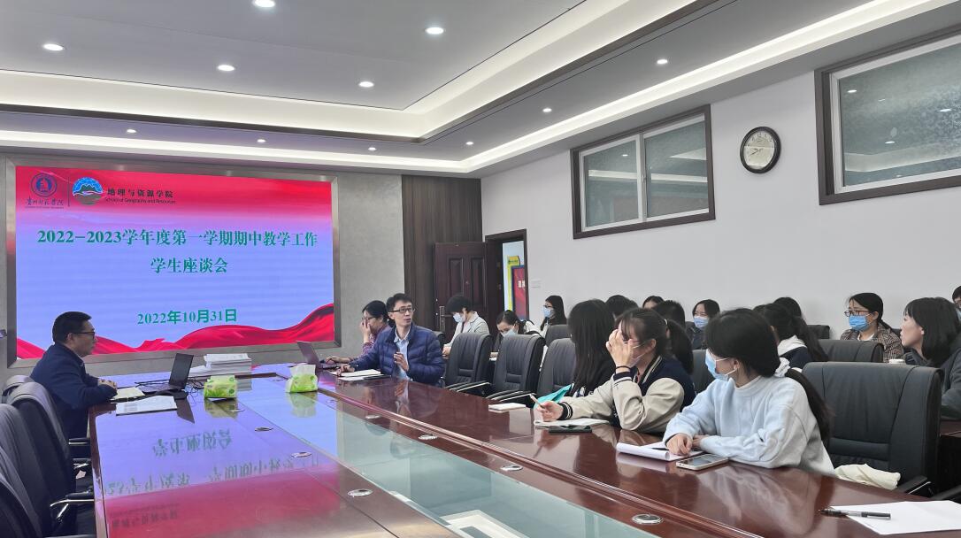 2022年10月31日在宁静楼williamhill官方网站323会议室,罗绪强经理、教学副经理邓家彬、人文地理系教师、资源环境系等四个系系主任、辅导员、教务办工作人员、各班学委、班干部等员工代表进行了期中员工座谈会,邓家彬就以“员工中心、产出导向、持续改进”出发,召集五个专业的员工对教学安排、课堂教学、教学管理、学风、教风等方面提出意见和建议。