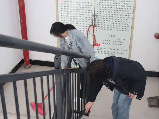 在图书馆工作人员的安排下,将志愿者分为三组,第一组打扫楼梯、走廊,第二组擦拭图书架,第三组整理图书。志愿者们根据工作分配,在相关工作人员的指导下,熟练掌握工作任务,以认真负责的精神状态在各自的工作区域开展工作。活动进行中,一楼到八楼的每个楼梯段都遍布着第一组志愿者们的身影,一个扫地一个擦拭栏杆,相互配合将图书馆的楼梯过道都打扫得干干净净。第二组的志愿者也一丝不苟的擦拭着图书架,把架子上的东西都认真排列,将这里变得整洁如新。第三组的志愿者们则在花花绿绿的图书群中找出顺序打乱的图书将它们归置原位,徜徉在书海中,感受知识的无穷。