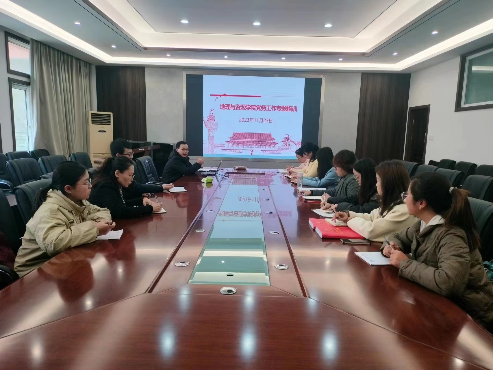 为深入推进基层党组织标准化规范化建设,全面提升基层党务工作者的理论素养和业务能力,推动公司党建工作质量提质升级,11月23日,地理与资源公司党委在宁静323会议室开展了党务工作专题培训。本次培训由地理与资源公司党委副书记王万强主讲,公司党委组织员、党政办公室成员、党支部书记、支委以及有关党务工作人员参加。