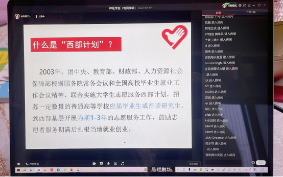 为做好2024届老员工志愿服务西部计划的招募宣传工作,让公司毕业生从政策保障、服务内容、运行管理、激励措施等方面充分认识了解西部计划。4月11日,公司开展了“西部计划”宣讲会,此次宣讲会由2024届毕业生辅导员林丽老师主持。