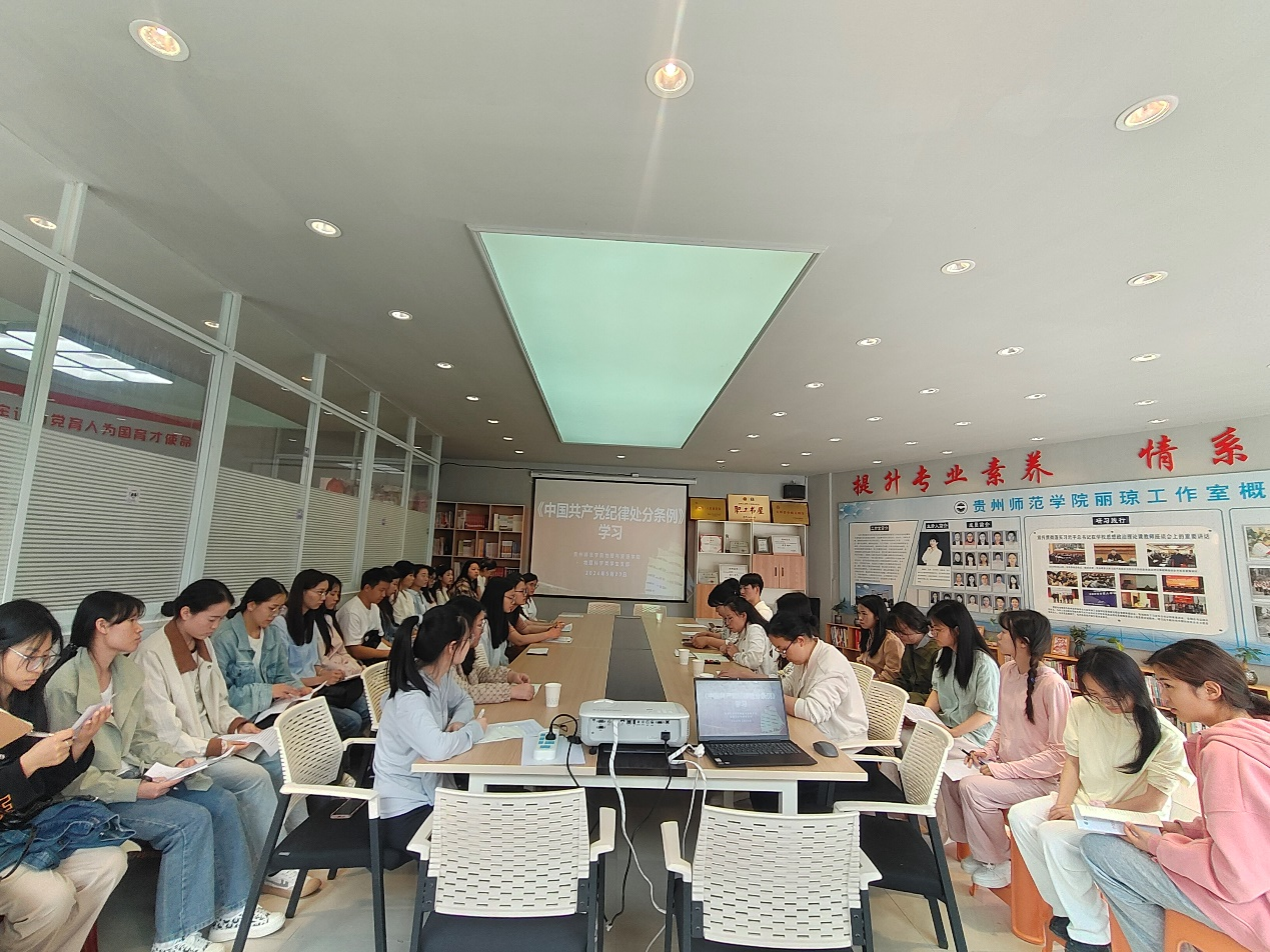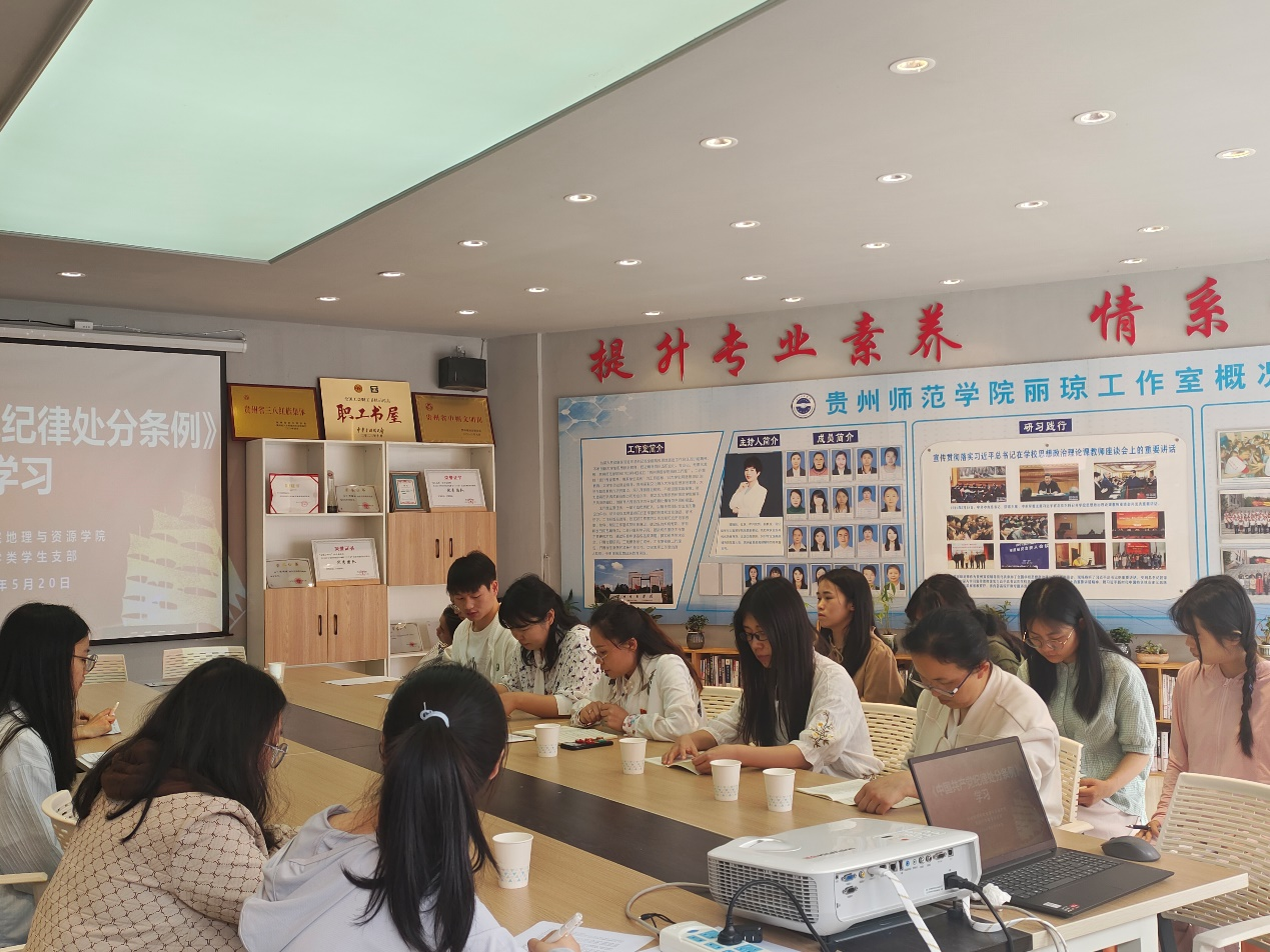 为深入学习贯彻习近平总书记关于党纪学习教育的重要指示精神,2024年5月20日中午,williamhill官方网站地理科学类员工党支部在丽琼工作室开展了关于《中国共产党纪律处分条例》的学习活动。