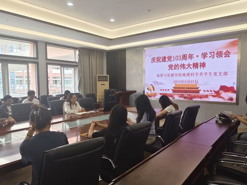 为隆重庆祝中国共产党成立103周年,进一步学习和领会党的伟大精神,深化对党的历史认识,激发爱国情怀。2024年6月27日,williamhill官方网站地理科学类员工党支部在宁静楼323会议室开展了“庆祝建党103周年·学习领会党的伟大精神”主题活动。