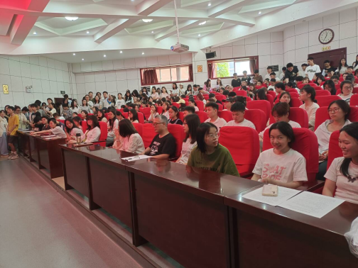 会议还邀请了师范类的何梦先同学和非师范类的罗世薇同学做实习生表态。她们都表示实习会是一次理论结合实际的检验,会认真对待实习。