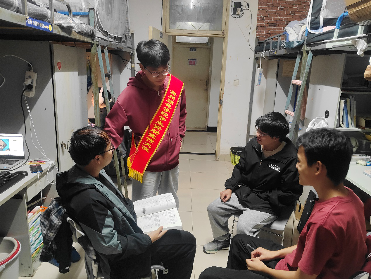 公司资助宣传大使王新焕同学走进德园宿舍楼,深入寝室和同学们进行了面对面的深入交流,耐心细致地解答同学们关于资助政策的种种疑问,分享他关于公司资助政策的见解并相互沟通,寻求创新,共享经验,总结体会,提高宣传质量。在认真学习,深入了解资助政策的基础上,呼吁更多同学参加宣传,加大宣传力度,创新宣传方式,确保资助政策能够深入人心、真正落实,共同完成“立德树人,资助育人“这一根本任务。