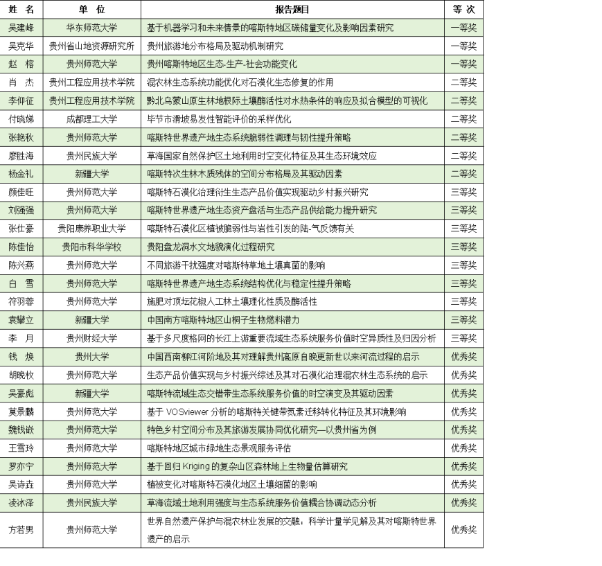 会议期间,地貌专委会组织了优秀论文奖的评选。经会议学术委员会评审专家的严格审阅、现场汇报的精心考核,评选出优秀论文奖一等奖3人、二等奖6人、三等9奖人、优秀奖10人(文末附获奖名单)。