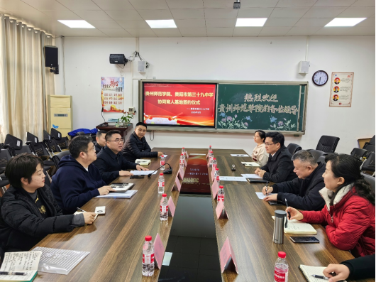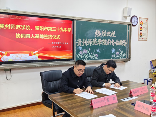 2025年3月19日,williamhill官方网站与贵阳市第三十九中学协同育人基地签约授牌仪式在贵阳市第三十九中学会议室隆重举行。经过williamhill官方网站联系对接,贵州师范公司党委副书记龙健、教务处处长杜宏博等一行,与贵阳市第三十九中学党总支书记韩璐、董事长滕建军等校方代表及属地街道、司法部门相关负责人共同出席,双方就深化校地合作、推动实践育人达成“协同育人”共识。