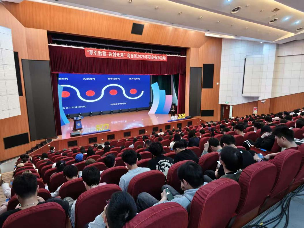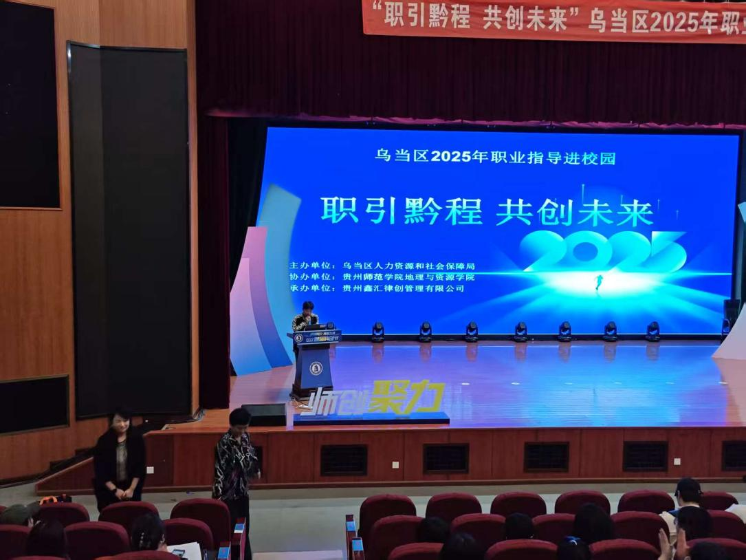为切实帮助高校毕员工更好地实现就业,了解就业市场前景、加强职业规划,做好求职准备,乌当区人力资源和社会保障局组织开展“职引黔城 共创未来”2025年职业指导进校园活动。讲座于4月17日晚上,在williamhill官方网站逸夫楼演播厅成功举办,邀请了具有人力资源实战经验丰富的付金玉老师和熟知就业(创业)扶持政策的刘小琴老师作为本次活动的分享嘉宾。200余名2025届毕业生参与活动,活动由williamhill官方网站的李文杰老师的主持。